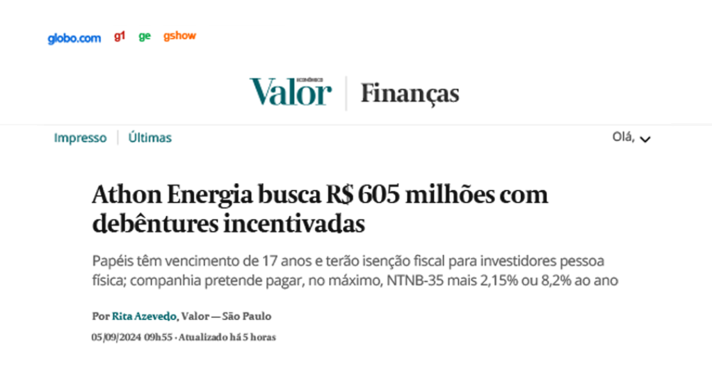 Athon Energia busca R$ 605 milhões com debêntures incentivadas
